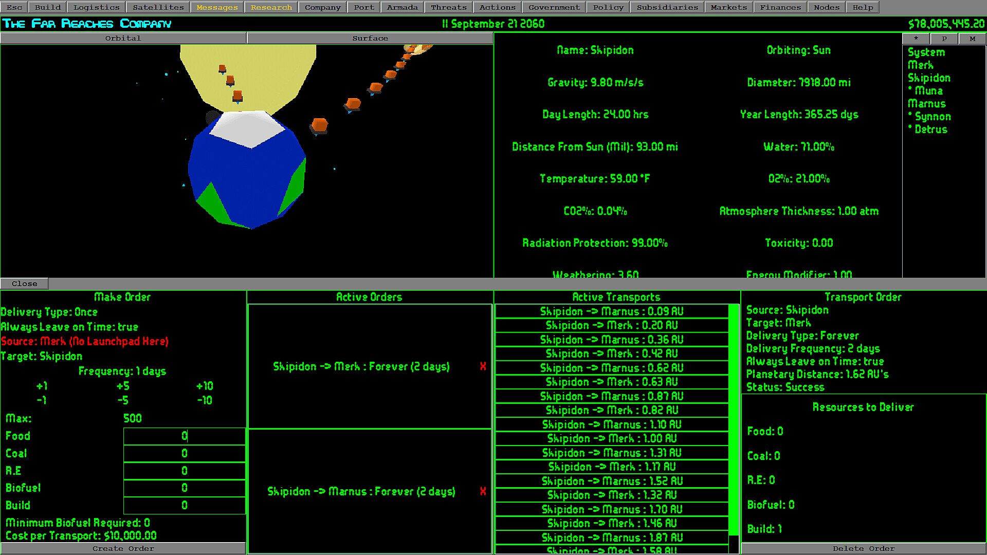 Manage orders and transports to create a web of resource management throughout the solar system as you supply your far out colonies with resources they can not get on their own planet.