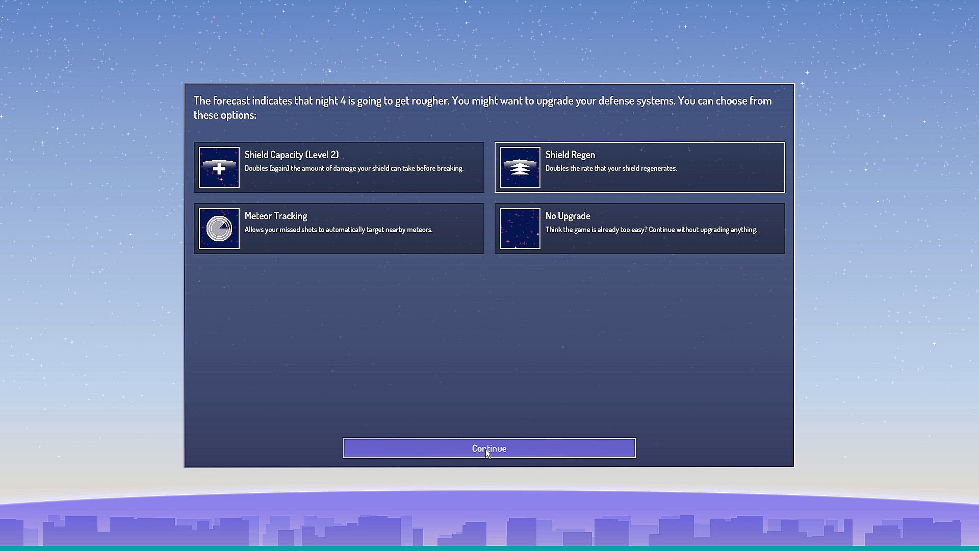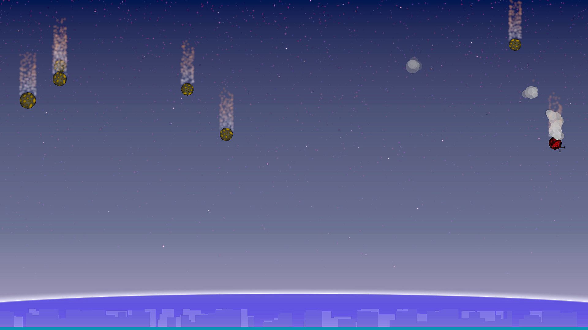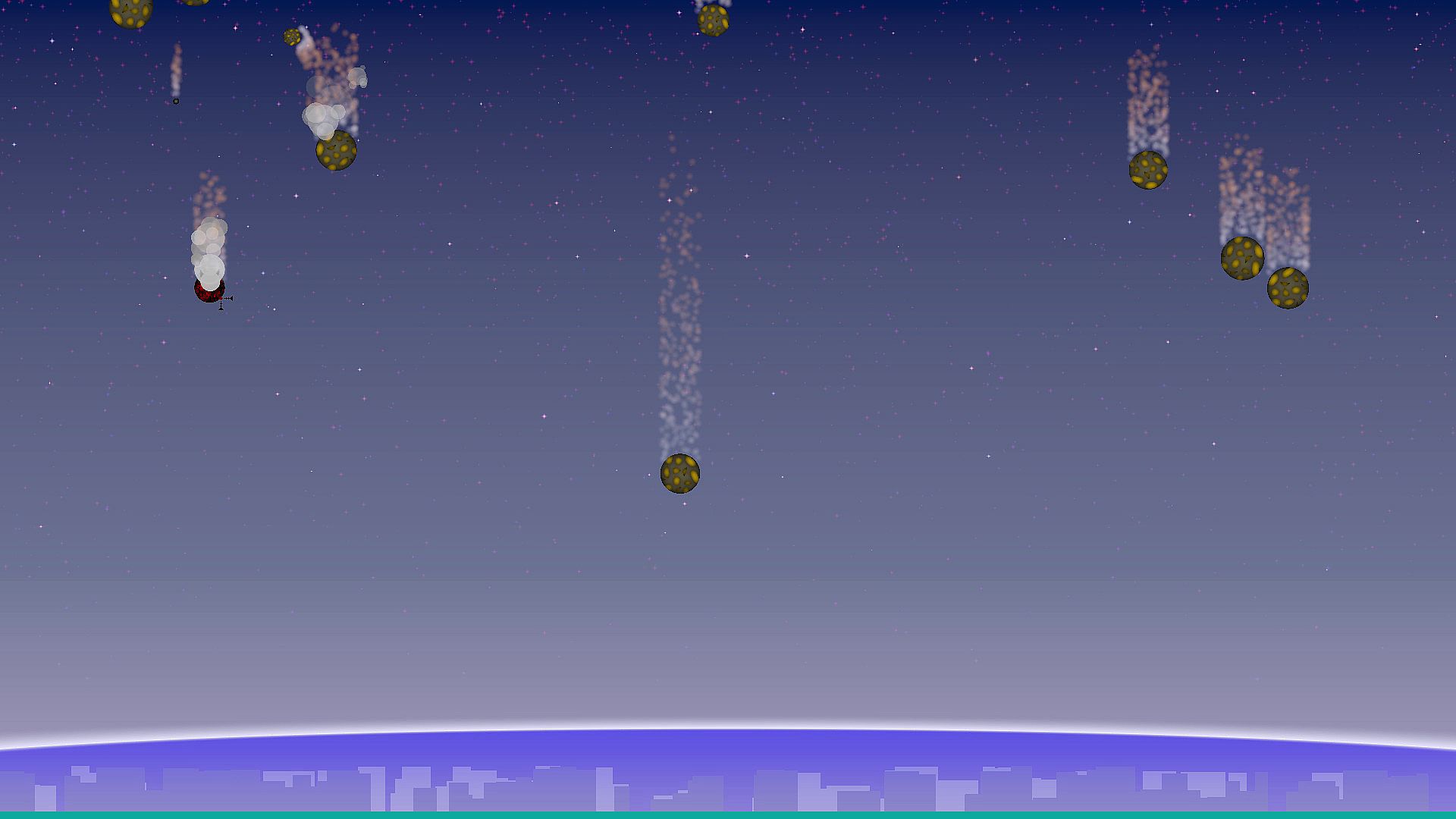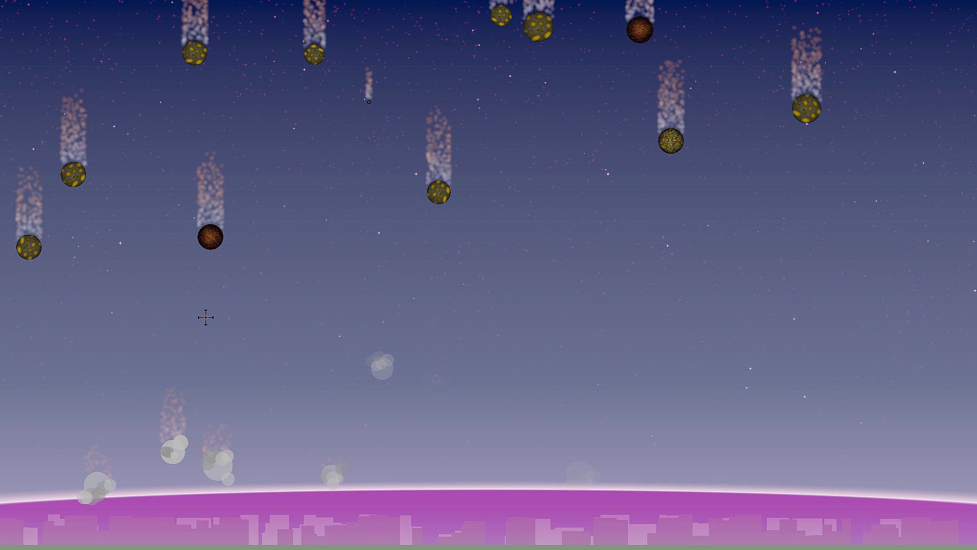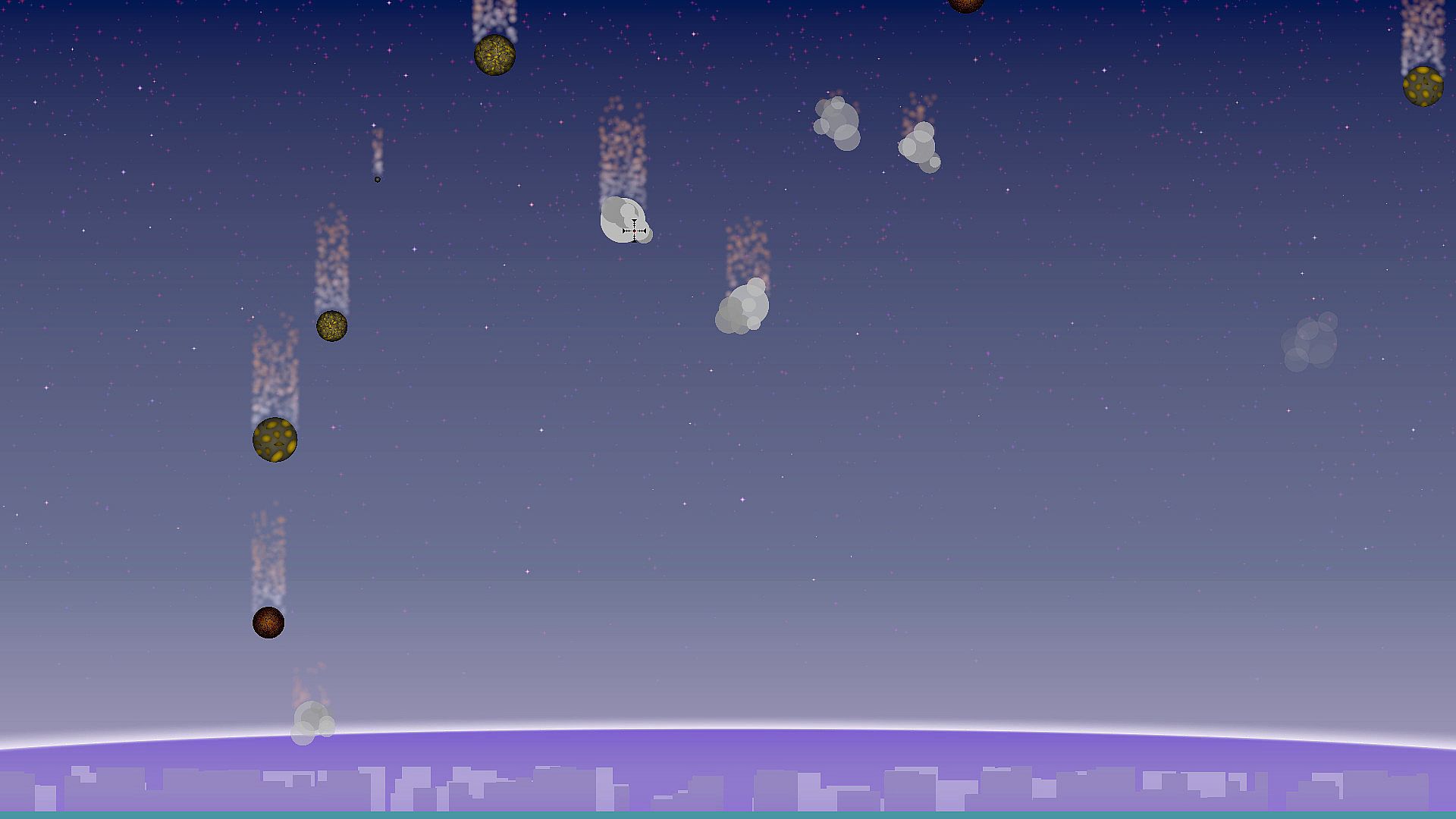 Your home town is threatened by frequent meteor showers, and has developed a defense system to combat them. But someone needs to man the turret! As meteors hurtle towards the town, your only goal is to shoot them down and protect everyone you love.