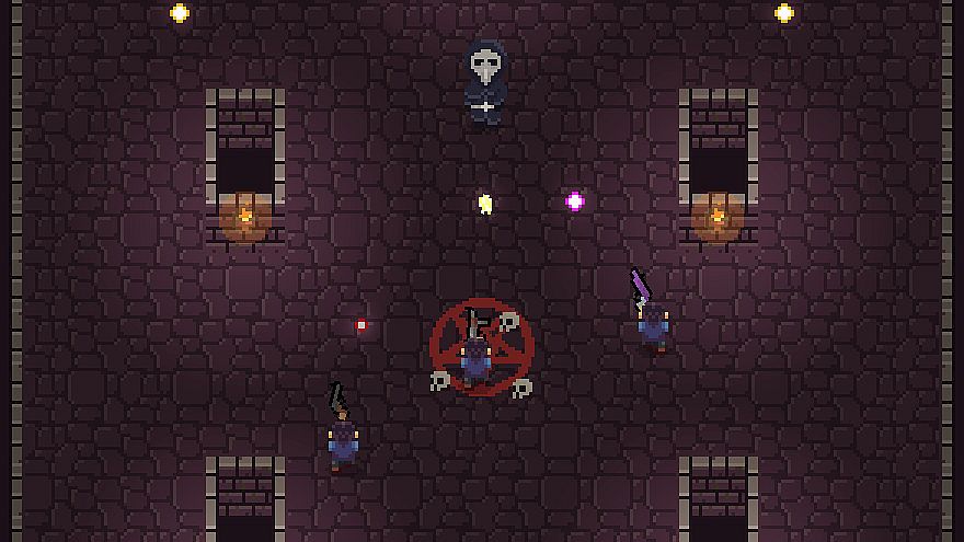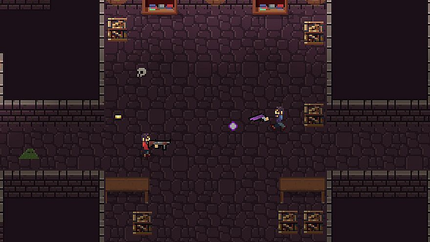 Team up with your friends in this top down dungeon crawler! Use teamwork to navigate through procedurally generated dungeons, slay bosses and collect their precious crystals. Keep your guard up and remember that these dungeons also have other players competing with you! Find different guns and items that help you and your team to seize the victory.