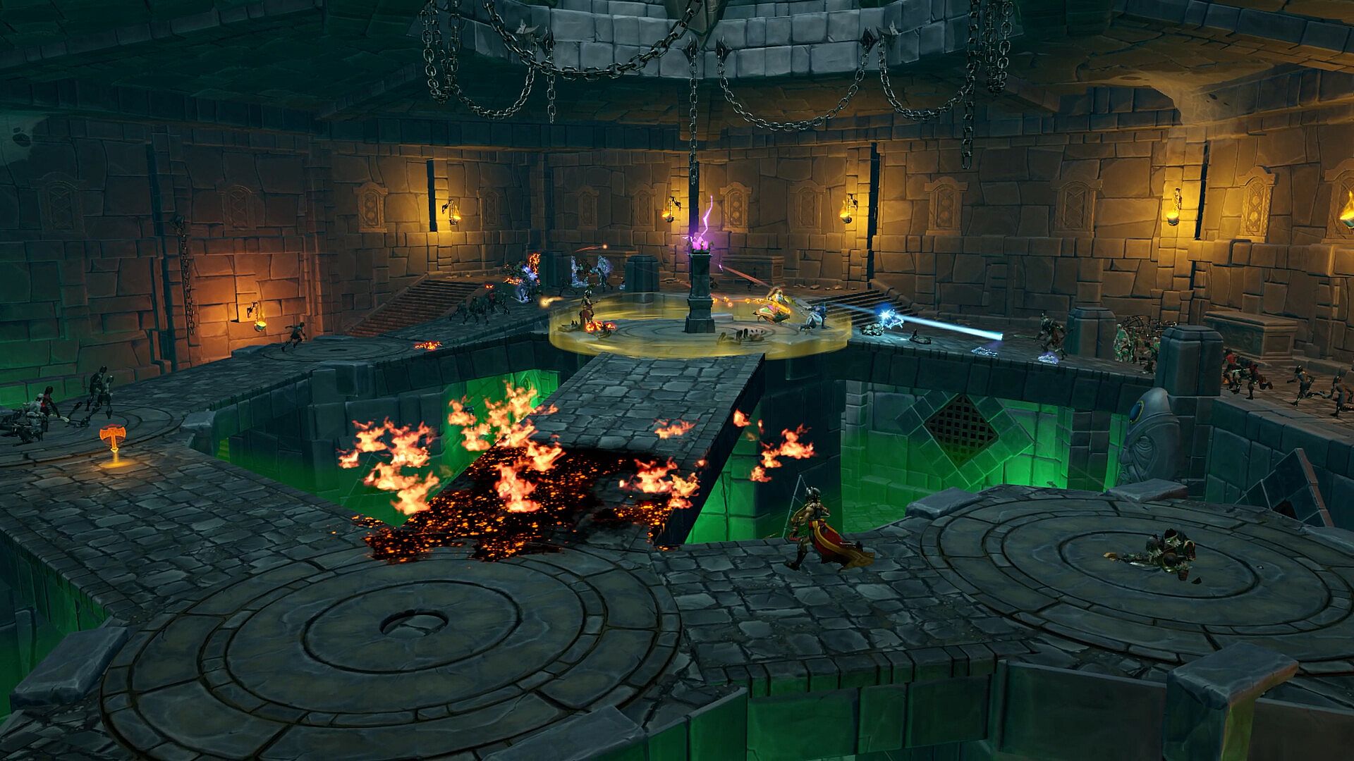 Dozens of items to help your heroes, harm your enemies, and survive the battlefield can be found scattered all throughout. Champions can also expect the occasional divine pick-me-up from the gods themselves, whose places of power will attack enemies and boost weary Champions. Watch out, though - drop the ball in protecting these gifts from the gods, and Hel's minions will swipe the power for themselves.Huge Boss Battles