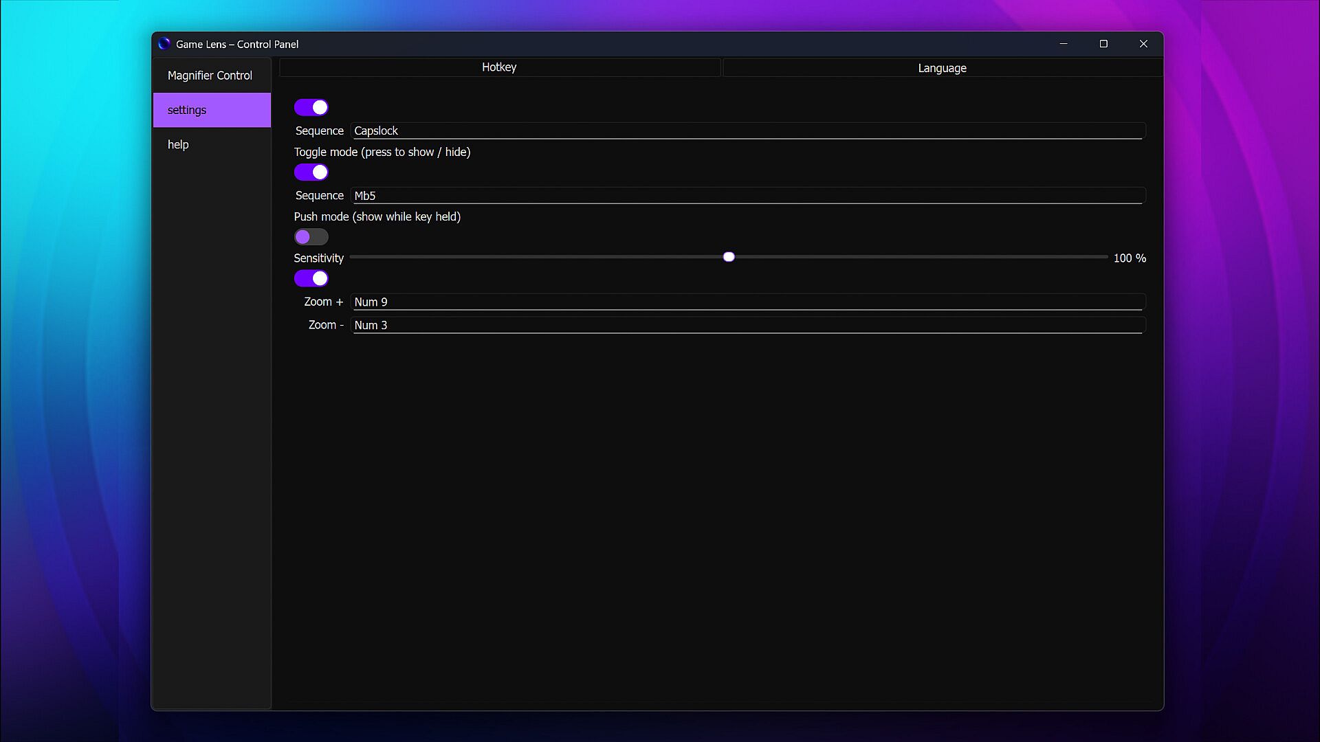 • Global Hotkeys – toggle magnifier, zoom levels, and visibility with customizable shortcuts.