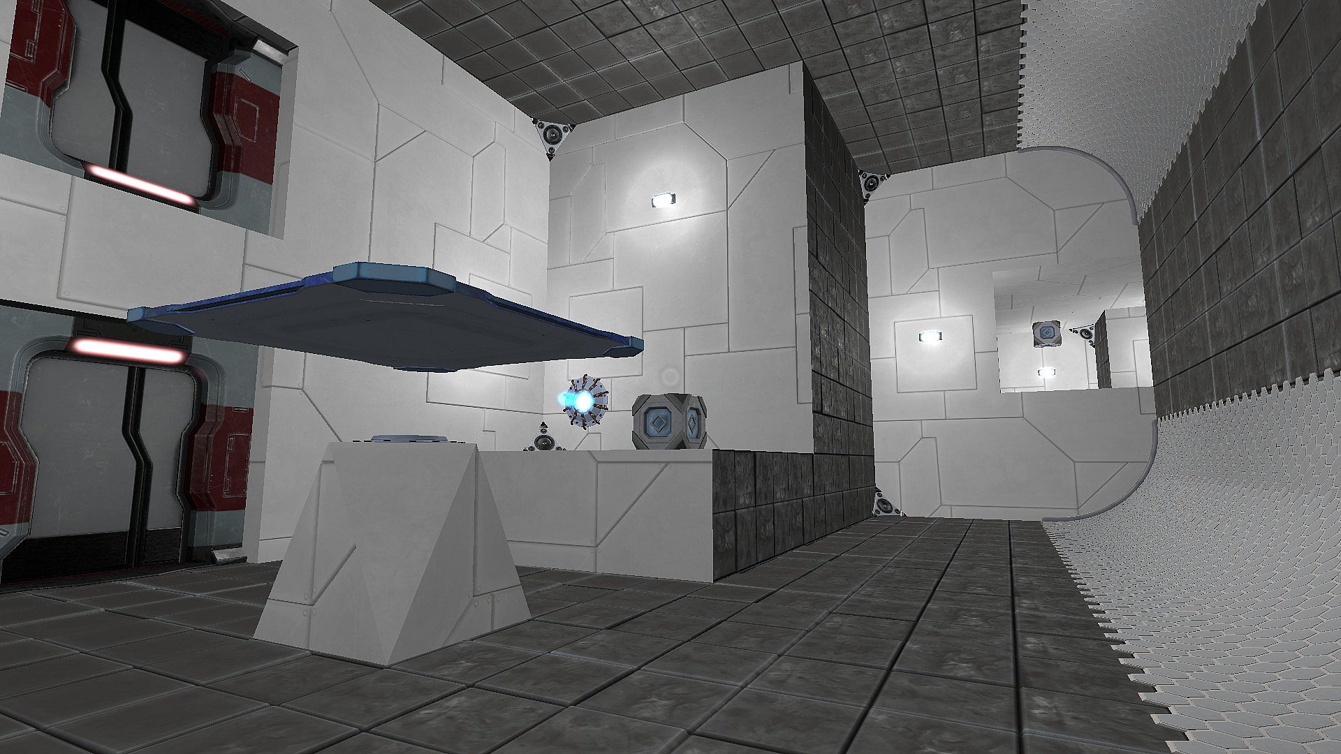 • Floating platforms held in place by the artificial gravity. You are able to walk on these.