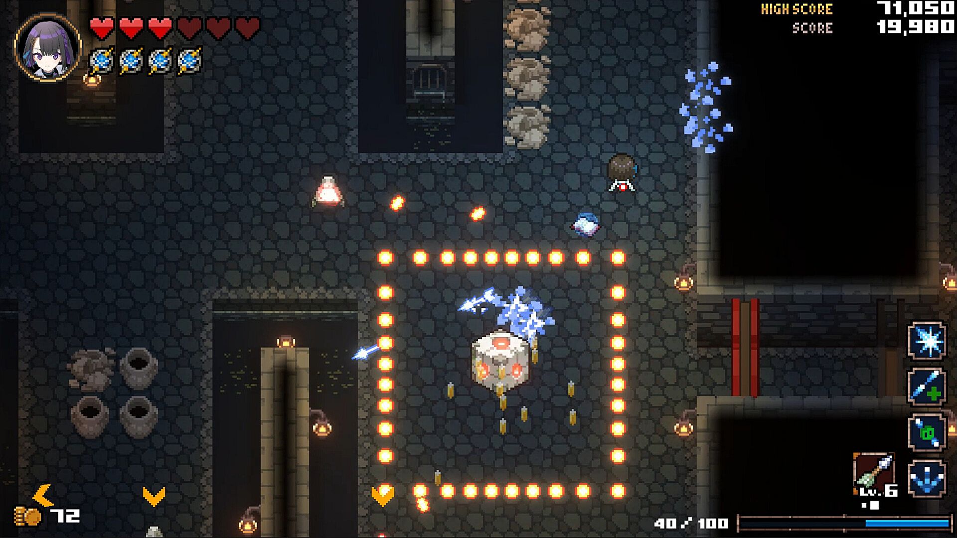 This is a bullet hell shooting game where you freely control your character and explore random dungeons.