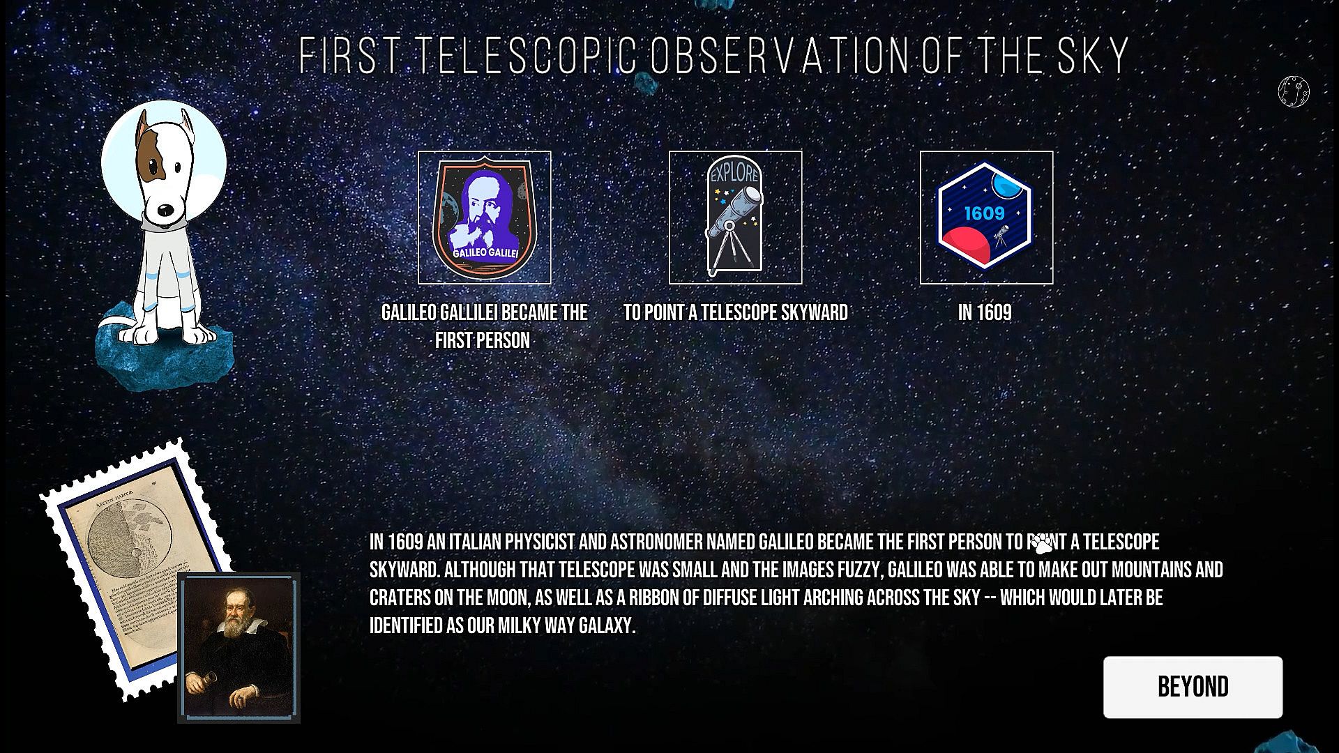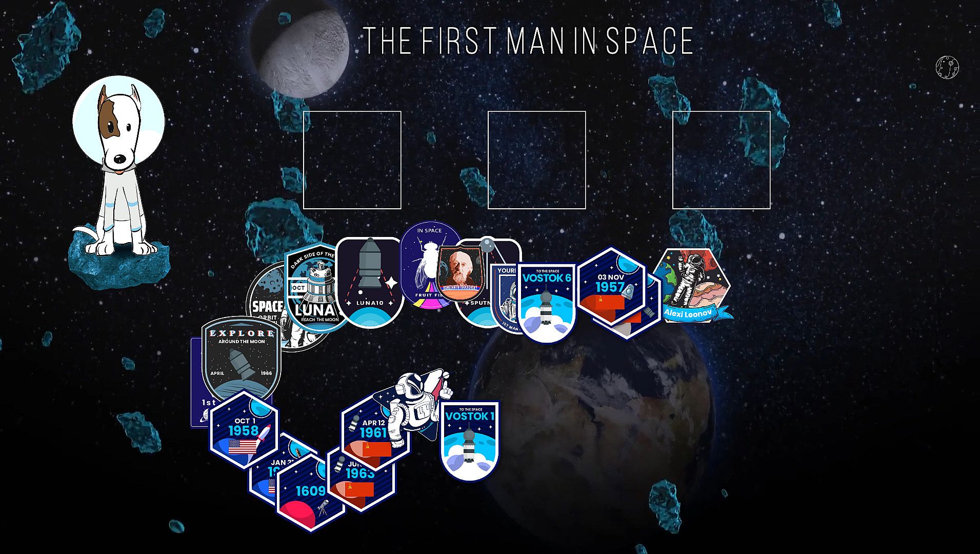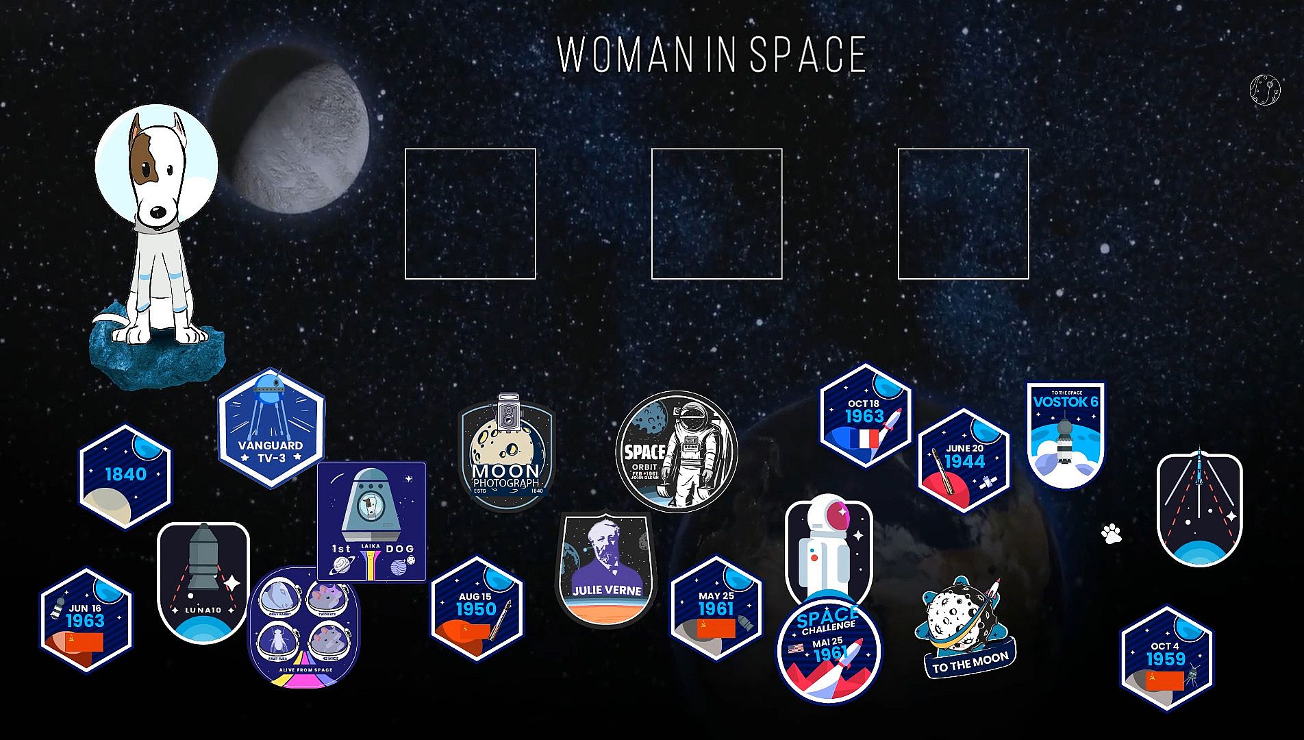 Test your knowledge of space exploration and the achievements that are part of the history of the world, with the help of Laika, the first space astronaut puppy.