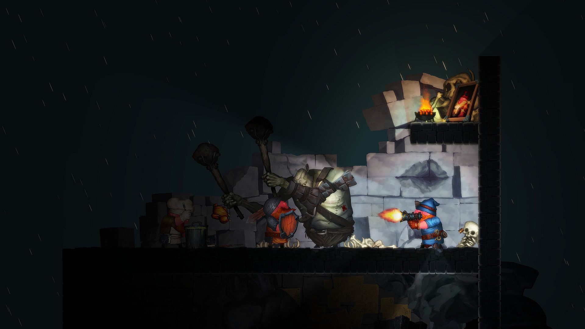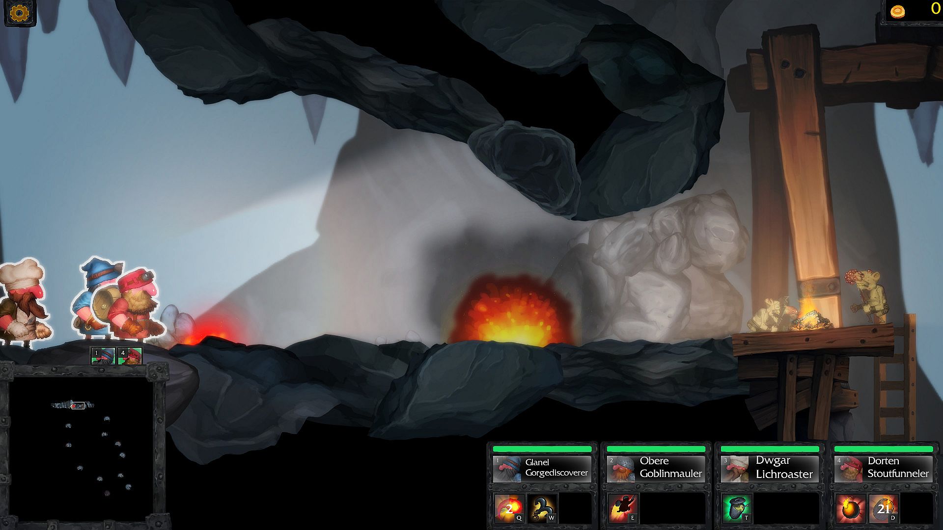 • Simultaneously control a party of dwarves in tactical side-scrolling gameplay.