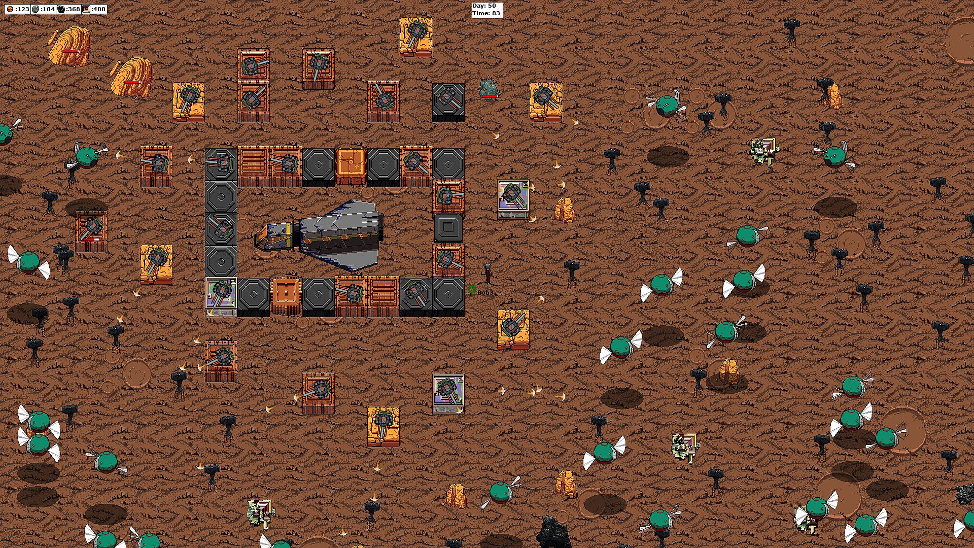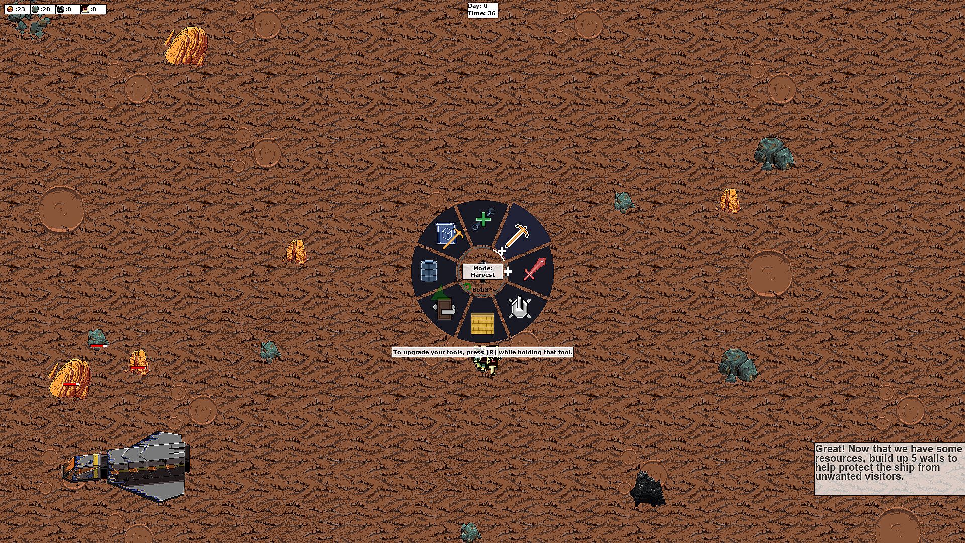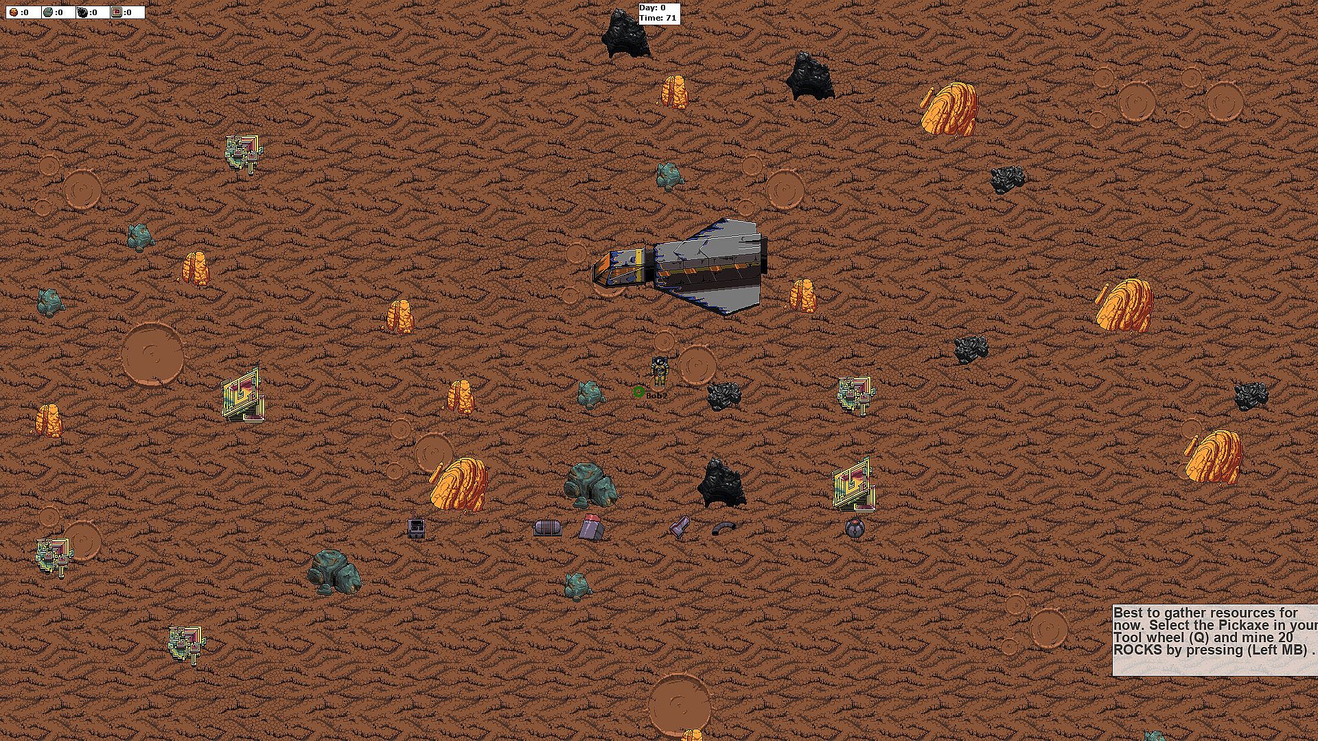 A survival game where you have to go around on the planet and mine resources to find parts scattered inside them. Once you find a part, bring it back to the ship to help repair and get off the planet. The longer you take, the harder it will become as the alien locals don't seem to enjoy your visit. Build up your defenses around the ship long enough to hold out the attacks while you find parts to get off the planet. Each character you can pick from has their own abilities and skills to help out with your play style. Do you think you can hold out and get off the planet?